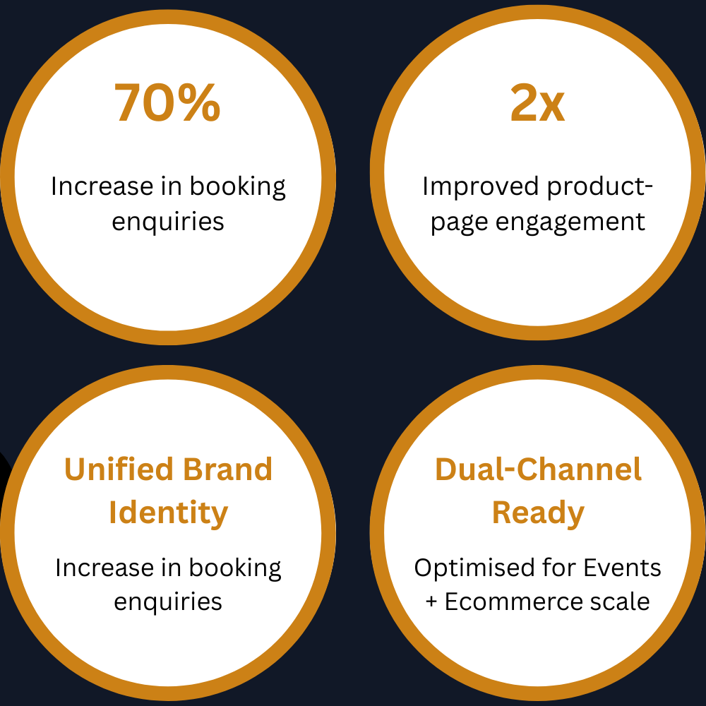 Building a dual-purpose brand that caters to two entirely different user journeys — event bookings and e-commerce shopping — while maintaining clarity, trust, and smooth navigation.